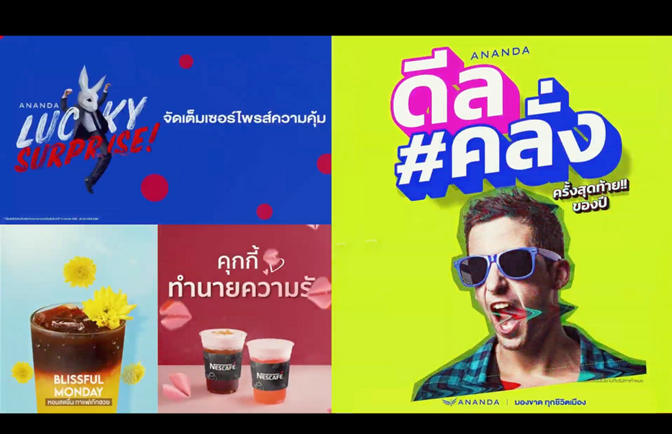 A collection of vibrant advertising images with text and graphics, showcasing the creativity and energy of the advertising portfolio.